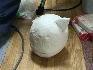 下地を発泡スチロールで作り、紙粘土を貼り付けます。
