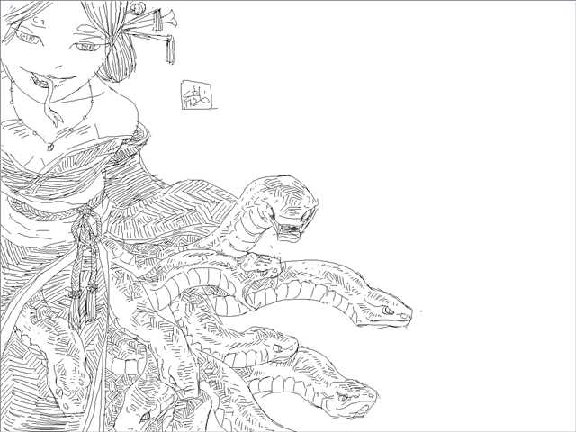 下絵はカンガルー写真の模写なのだが、ちゃんと竜にみえる。