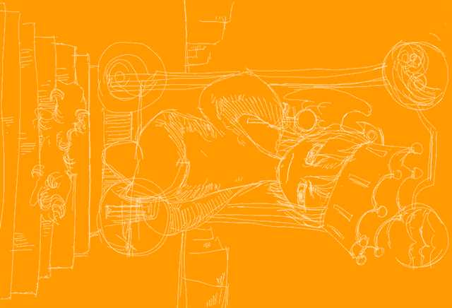 くっきり色を重ねて、消しゴムでざっくり消す。