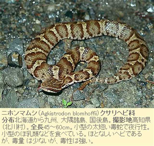 ヤマカガシは刺激を与えると"コブラのように"体の前部を上げて大きく見せて威嚇する。