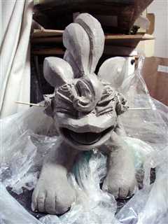 まえの狛犬ちゃんが中に芯が入ってなくて