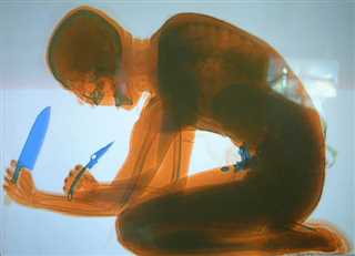光に照らされた、胎児が・・血管の赤と、皮膚のオレンジ色が胎児を形作って、居たので・・。