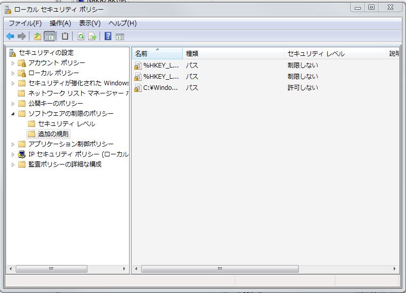 ソフトウェアの制限のポリシー/追加の規則/新しいパスの規則