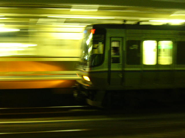 お寺巡りとトロッコなのに 1/3ぐらい、鉄道写真が(愚) そのなかで、夜の京都写真♪ やっと、新快速をまともに撮れました〜♪ |