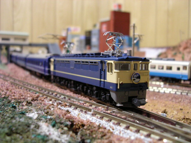 重連牽引もできますよん♪ なぜ二両になったのか。 これまで買っていたEF65は 中古品だったんで JRマークがついてました。 で、きちんとした国鉄のEF65が欲しかったので 置き換えも視野に入れて ぞぬで購入したわけです。 穢れたEF65なら2800円で よろこんで放出します(悪) |