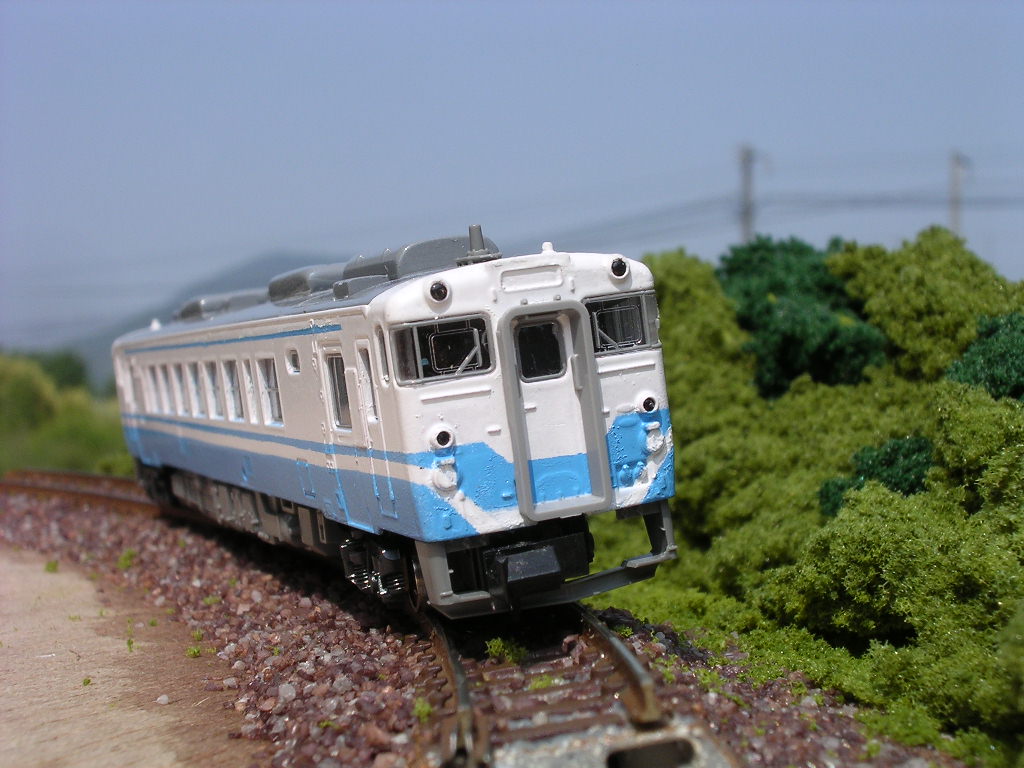 今月ニューリアル発売みたいですよ ロクロ首で待ちましょうw ・・・そんな自分は金がないので買えない組 今作っているレイアウト 部分複線化工事中だったりします 博多南みたいな駅を高架にして列車区を作るつもりですがいつになるやら… 写真は複線工事区間を行くキハ58 |