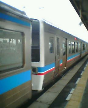 本線のキハ58系、3422Dとっとりライナー 西鳥取車両支部引込み線のキハ181系、1073D便いなば4号です。 ....ってなわけで同一方向に並走します。ちなみにケツうちです。 頭であわせるには、時間的にもっと上流でだいたい的に草刈...(泣)。 ちなみに、1073Dは3422Dの接続をとるので駅構内手前で入れ替え信号待ち。 これでも頭で並ぶけど、動画的には95Km/hでOUTからぶっちぎる画が撮りたい。 みゃあさん WMV苦手です。←大いに言い訳(MediaPlayer9入れたくないっ) Webでも、Mpeg(VCD規格)。←最近更新してないのに、きてる人がいる(誰だろ?) サムネイルも出してないのに10Mオーバーのファイルを落とす人が... BBな時代ってすごいね。 |