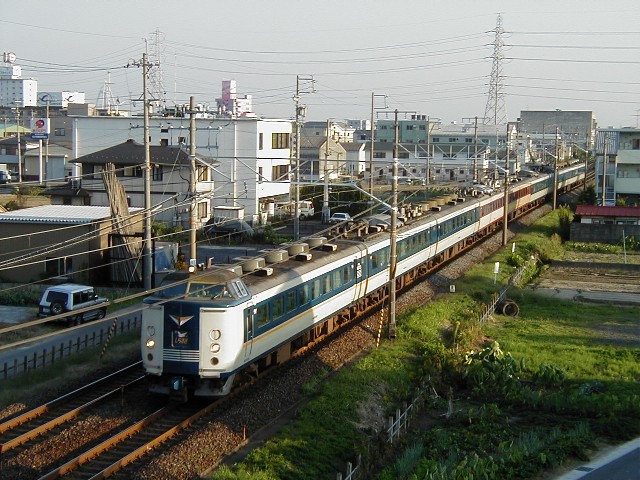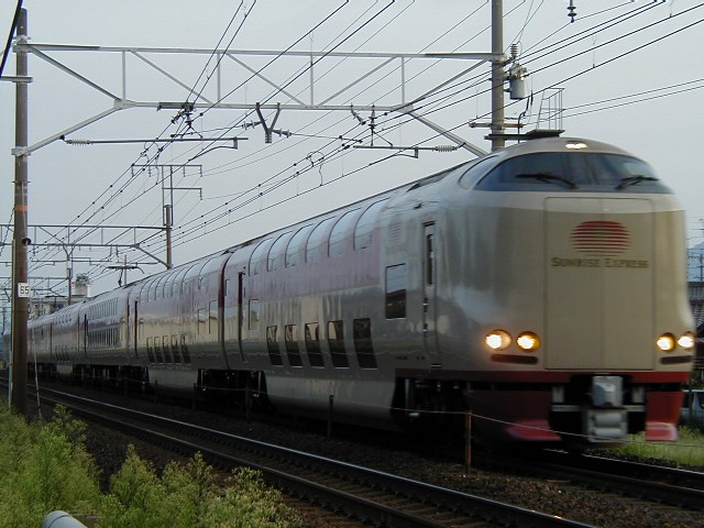 キハにある反射板がいかにもいいです。模型でも再現するとおもしろいかも。 そういえば最近東海道で285系ことサンライズ(3002)が試験を行っています。 撮影のために5:30起きはつらいですぅ。 |