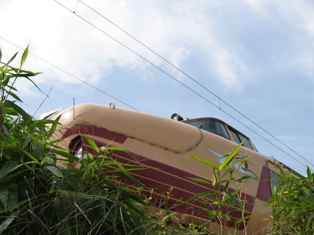 ま、線路歩いて定位置まで歩いていたおじさんと比べたら・・・ いちおー、建築限界には入ってないですぅ(ぇぇぇ 取ってる場所が道路だったし・・・ 高架に、直流かも地元助成ありなんですよねぇ(汗 |
