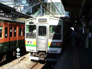 鹿島神宮駅っぽい。 夜明け前から日立電鉄うろうろ。 なんかとってもいい感じだったけど、確かに廃止されちゃうよねぇって利用度。 やっぱ、こういう古いのは厳しいのかなぁ。 鹿島臨海鉄道は歳末警備の添乗かなぁ。 鉄道警察隊4人に大洗駅駅長にその他各種幹部。 なんだかなぁ。 とりあえず日立電鉄・鹿島臨海鉄道完乗。 現在ヨ217逗子行きらしい。 今晩は宿泊は車中泊。。。 写真は、日立電鉄・常北太田駅。 |