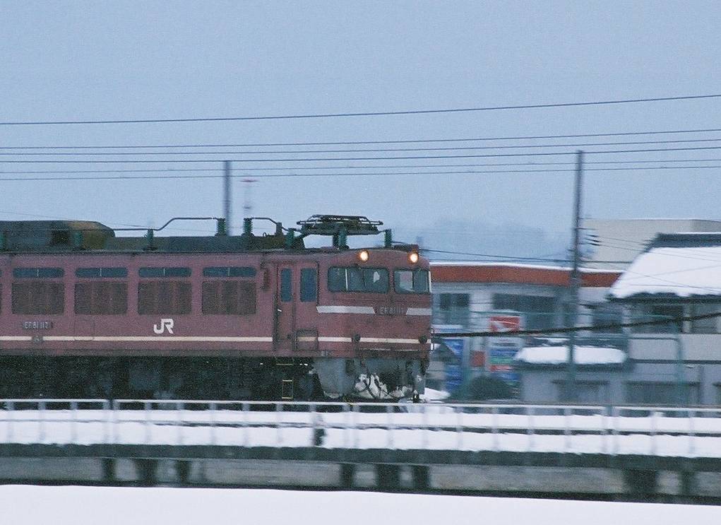 ISO400です。 やっぱり冬場はISO800とか1600って必須なんですかねぇ・・・ ISO400で夏場は特に問題なかったのですが(というより、自分の家に何故かISO400がたくさんあった(w ) 流しは、もうこんな写真道でもイイって感じで流すと成功します。 その反対で、編成写真は手がふるえてピンぼけです(涙) |