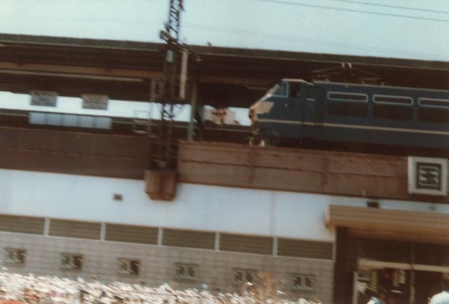 あい。「国鉄明石駅」の<国>の看板が見えます(w 書いていませんでしたが、たしか昭和52年夏の写真です。 ・・・親父のマニュアル一眼レフ・・・小学校2年のガキに良く貸したものだ(汗 当時、EF66は貨物専用機でしたよね。 |