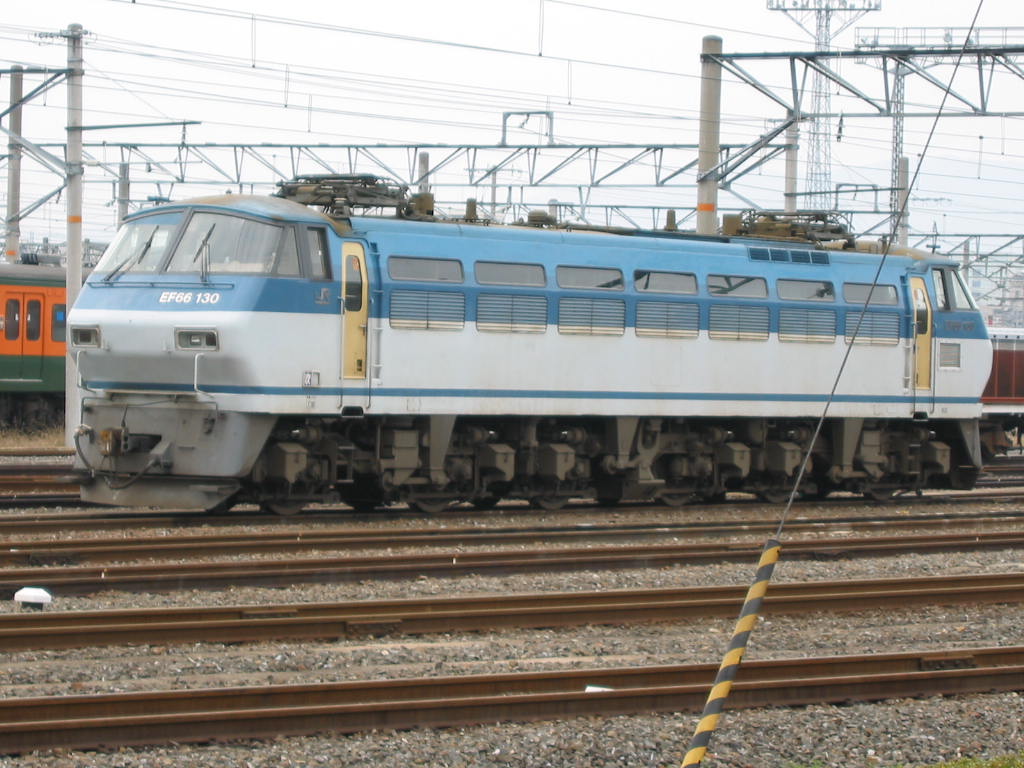 EF66自体は高速貨物専用機の位置付けの開発で、空気バネ履く貨物がずだだだ〜っと まあ66-100は65-Fの置き換えだけど... EF66はキハ181系の目の敵です...あぁローレル賞... |