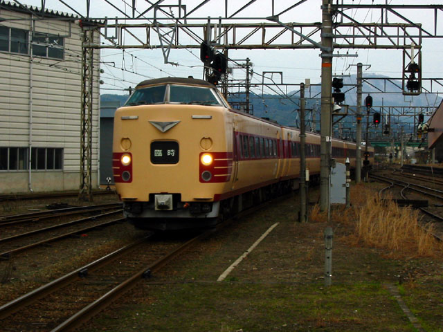 630号は一応全部北陸線に関係あります 700系・ 100系・100N系…米原(w キハ58系 …能登路・わかさ他 117系 …長浜盆梅号 583系 …きたぐに 381系 …ちくま 写真の381系、「臨時」表示なのですが・・・(^^; |