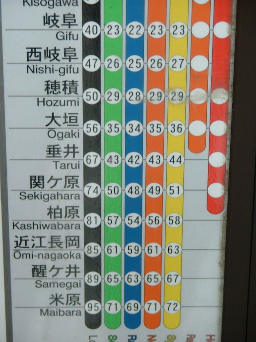 名古屋のほうから米原まで行くのに区間快速から特別快速を使っても ほとんど停車駅違わないから所有時間変わらないかと思いきや尾張一宮や岐阜まで 快速が一番速いみたい。。。 |