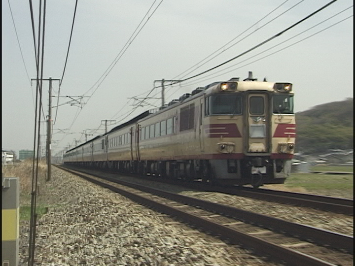 あの時内側でウロチョロしていたのが僕です。 もしかして後追いを撮る時に踏み切りに激突していたの見ました? 見上げを狙ったらゴーンと・・・_| ̄|○ 写真はキハ181*8Bの団臨とキハ121浜坂行き このために急行だいせんを倉吉で降りた一種の馬鹿 |