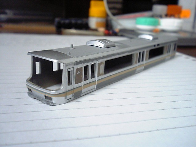 暑さでやる気のない中、やっと223系2000番代の初期塗装を行いました。 とはいっても1両だけですが… |