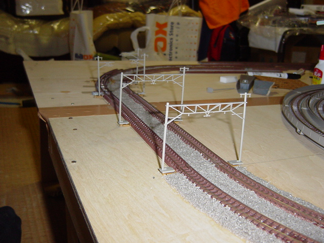 下のレイアウトとの位置関係もよくわかりますねぇ。 スイッチバックとループで接続だぁ(ぉぃぉぃ)。 デジカメさん、よい旅を(違)。 |