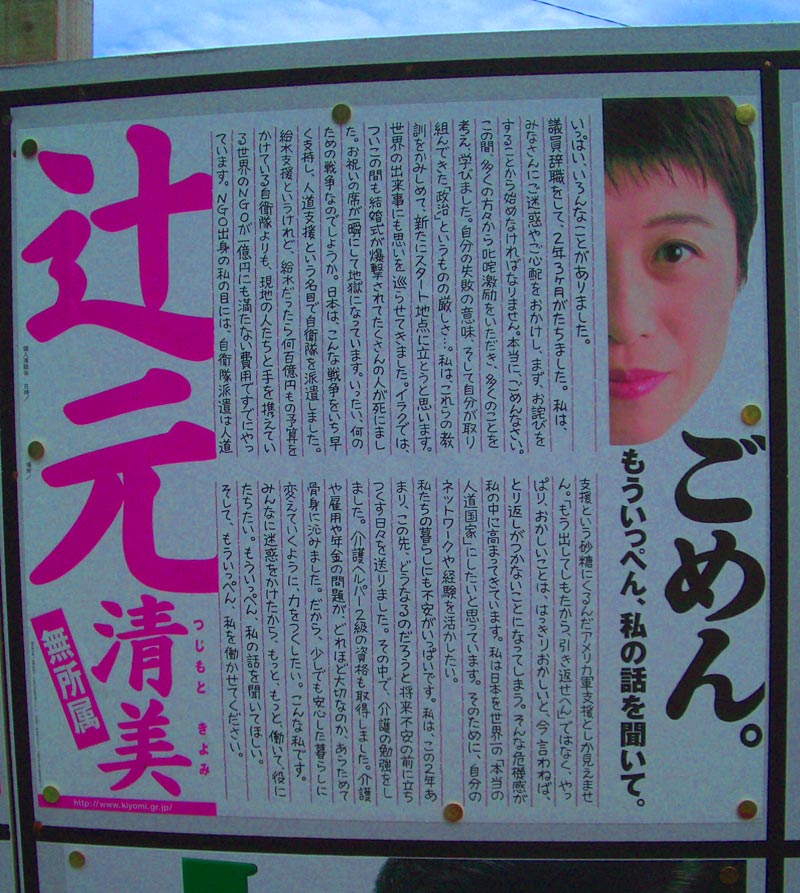 知らなかった……。 しかし選挙ポスターにこんな長文書くから思わず写真撮って、持ち帰りで読んだとか(愚)。 |