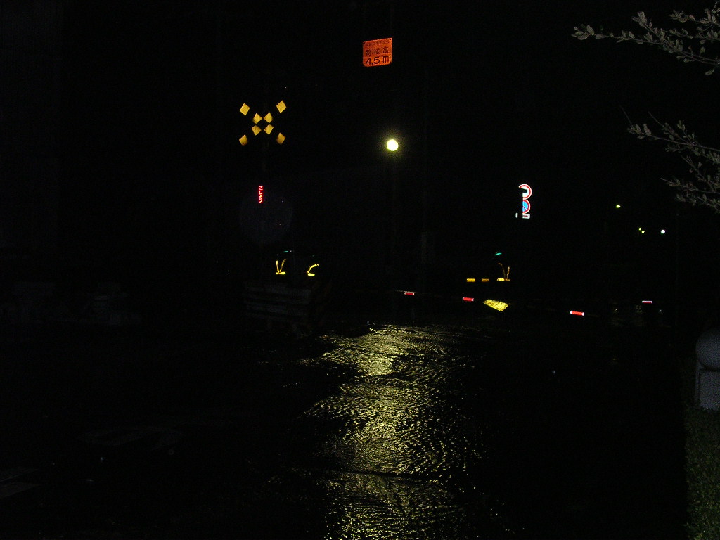 水に浸かりすぎて踏切が死にました。。。線路から道路に向かって凄い勢いで 水が溢れ出してきてます(汗 |