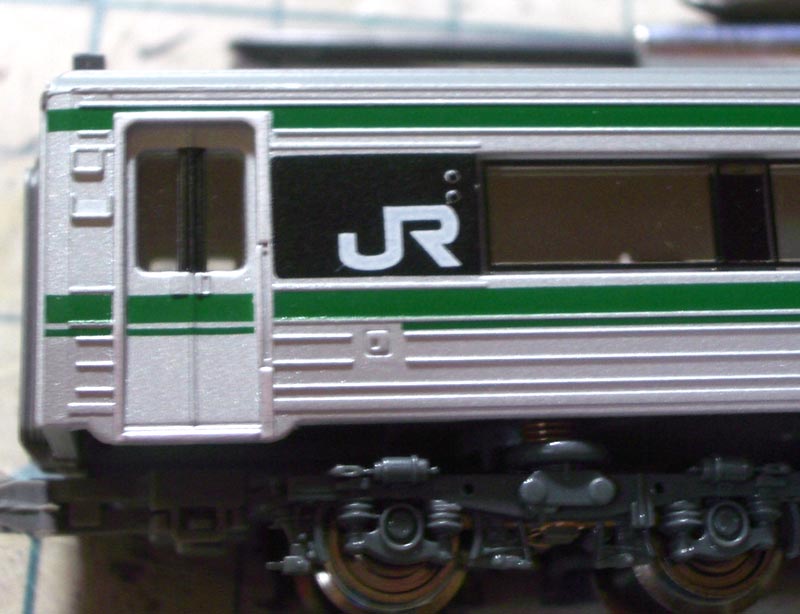 早速、運転台側の連結器だけTN化して、JRマークを取り付け、ヘッドマークは