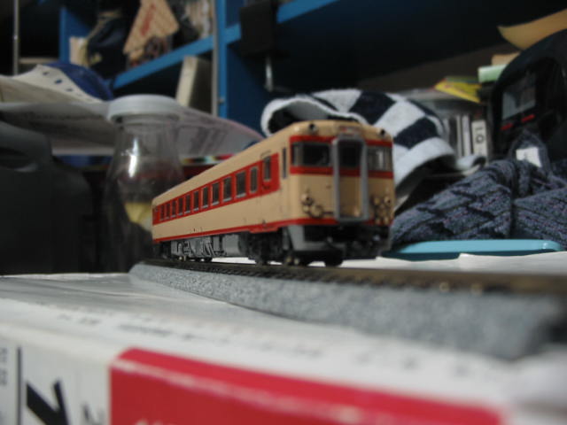 はじめの頃は、セメダインCでプラスチック止めようとしたり。 あとは、コピー用紙に色鉛筆で塗ったキハ54が何年もはしってたり。 うちの車たちも、リアルで見たら狂いまくりぃ。 |