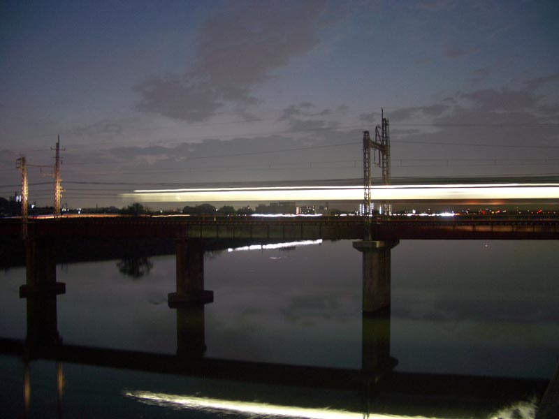 これは手持ちでの撮影ですか? この光の筋がいいですねぇ。何気に架線柱にはヘッドライトの光があたっていますし。 添付写真は先日撮ったもの。 あと少しで空港開業です。岐阜バスの空港バスはどうなることやら… 300mm×1.5=450mm相当で撮影。 |