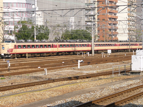 長野〜新潟の臨時快速だと思います。(どこ所属のかな?)この前にもう一回通ったんですけど485系3000番代でした。 |