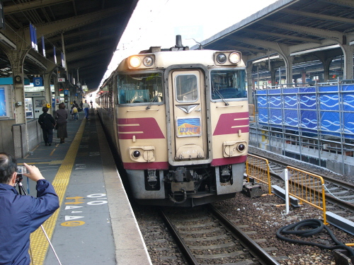 キロがあーばん色しかない定期「はまかぜ」に国鉄色単色を求めるのは無理ですよ〜。 臨時があっても、181-47が出てこない限りどこかにアーバン色が入ります。 出てきても総勢4輌だから、年末年始の臨はまかぜもしんどそう。 動画の方は、カメラが重くなけりゃへっぽこ三脚でも十分だと...。 「あさかぜ」「さくら」の影で...(出雲は朽ちるのを待つだけか?) 「いそかぜ」抹殺説浮上。デマだといいが正月の検査入場が実施されるかどうか 「はまかぜ」に比べ本数が少ない分正式な発表があれば、こっちの方がおおごとになりそうなので、 雪が降らないうちにさっさと済ませにゃいかんかなぁ。車で2日仕事だなぁ...。 |