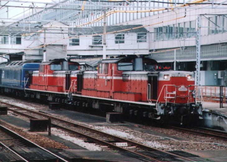 なはですかぁ。 西鹿児島まで行ってた頃に、ソロに乗りましたぁ。 熊本過ぎてからの閑散としてること。 なはのソロってコンセントがあるから助かるんですよねぇ。 トイレの狭い折り戸はブルトレたちだけですかねぇ。 あれってどうしたもんだか。 ほんと狭いですよねぇ。 特急の2Bは…九州のは添乗員はいるらしいです。 だから本物のワンマンではないらしい。 一番初めに本物のワンマン以降は四国な予感だけど、国土交通省の四国が2Bワンマン許可してないからなぁ。 これもどうしたもんだか。 車内販売は廃止済みだけど。 DD51重連。 いつから見てないだろ。 遠い記憶のかなた。 |