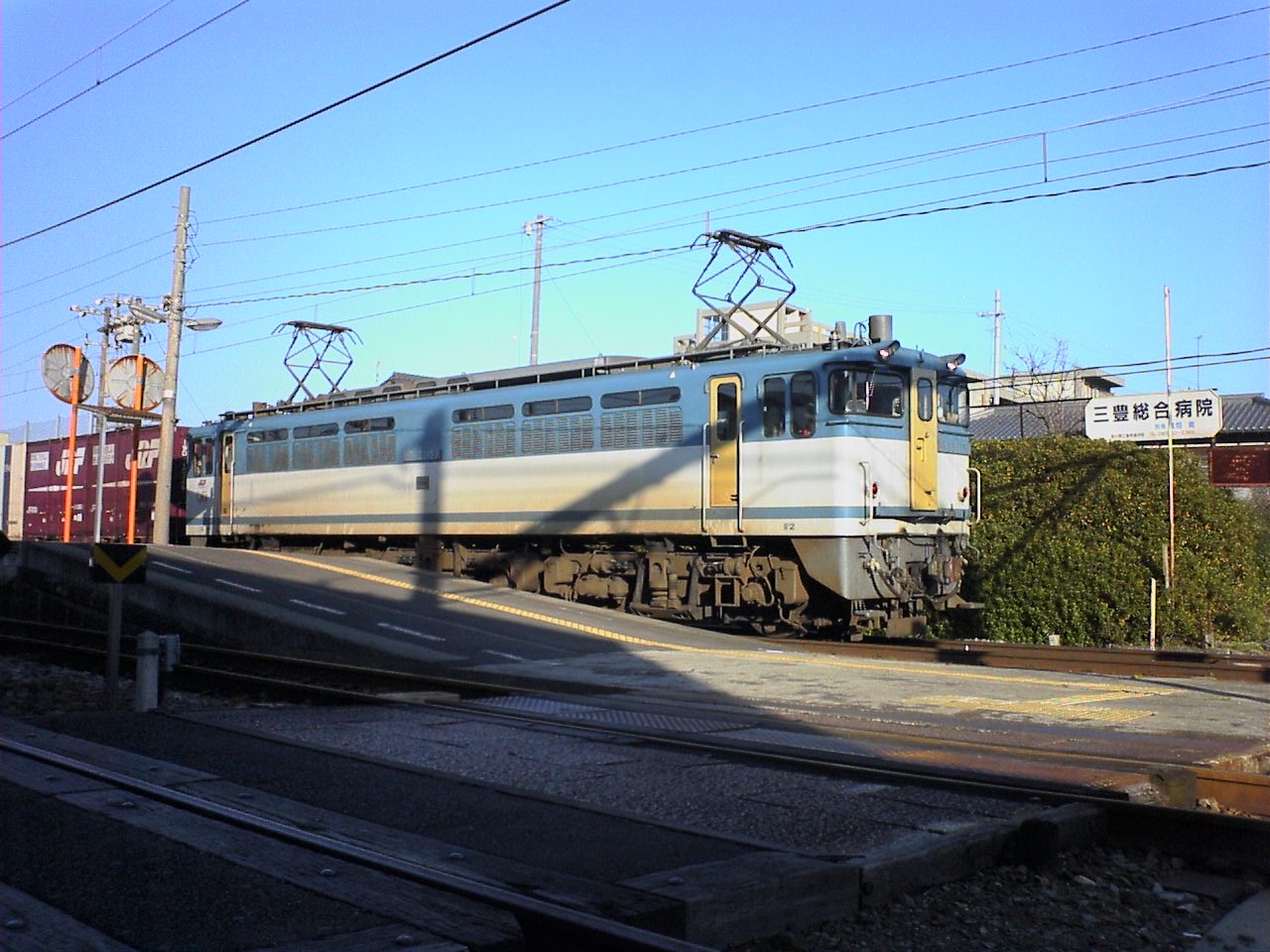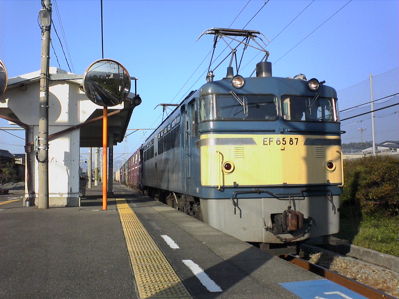 T浜の架線って高いのね。 ヘッドもテールも確かにわかんない。。。 やっぱ四国の貨物もこの機関車ばっかりですかぁ? こっちは近鉄特急で。。。 |