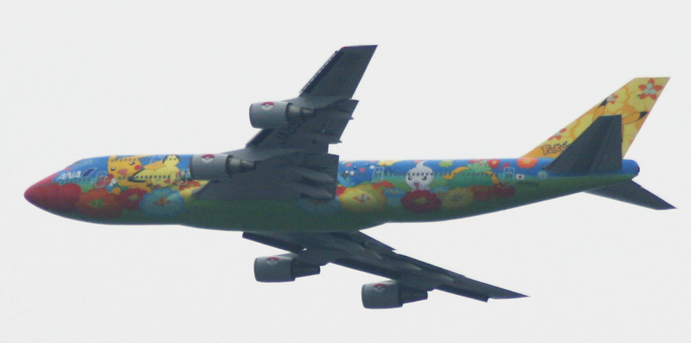 って、角度おかしすぎ……だってねぇ。 空港までまだ30キロある地点で、300mm(換算480mm)でゲットしたから。。。 上見上げたら向かってきてる飛行機がポケモン色っぽく見えたから、緊急でレンズ交換♪。 |