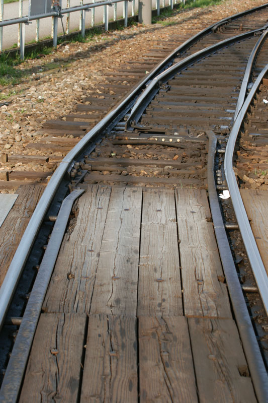 ここ通るときむちゃくちゃ揺れるんですけど。。。 フランジ乗り上げてるんじゃないかって感じのスジあるし。 北陸鉄道・新金沢駅構内。 |
