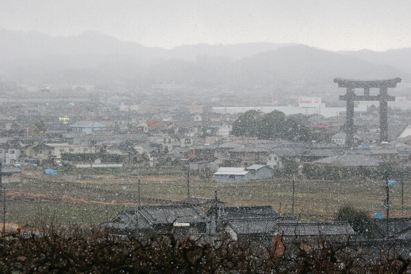 吹雪で視界も怪しくて、そんな中にカメラだけしっかりタオルでカバーして自分は傘も差さず。