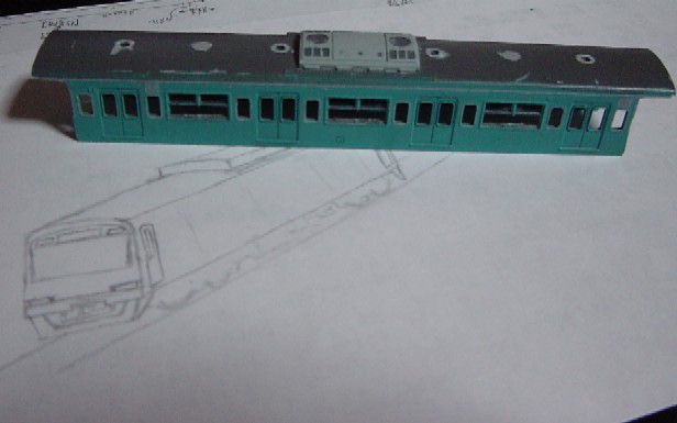 ボディを利用してフリーの気動車を作成中です。(下に書いた絵のようにして いく予定です)あとこれと平行してコンテナ編成と119系をイジっております。 |