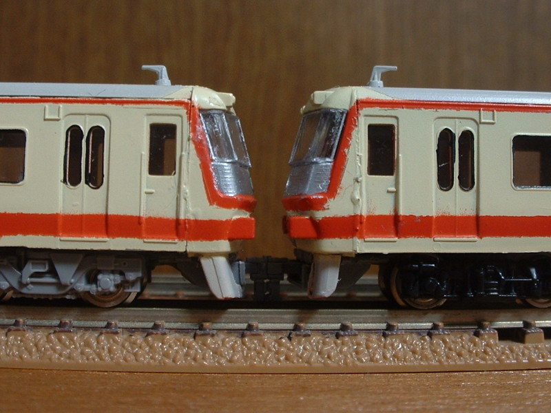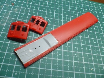 赤いやつの一部が灰色になりました。 第3軌条からパンタを積むために、余剰の101系キット(正確には溜め込んだ)の低屋根部分をはめ込みました。 フリーなので気軽にできる反面、これからどうしようかと迷ったりしています。 |
