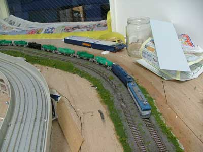 同時に12mmまでなら地面が下げられます。 騒音少ないですか。確かに台枠に直接線路置いてるときと音は変わらないです。 前みたいにコルクしくとさらに高くなってしまうんですが、 騒音を消すと結構いい感じなんで色々検討中です。 文章に誤字脱字が多すぎですね。直さないと…(愚) |