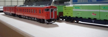 最近導入した気動車と最近落成したコンテナ車で国鉄時代を再現 してみました。(だいぶ無理がありますが。。。) |
