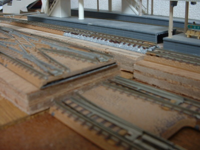 トンネルに隠れるレールには、バラストを撒いていません。脱線した時、バラストをこすりはがしてしまうかもしれないので・・・・。トンネルを取り外して運転することはやらないつもりです。