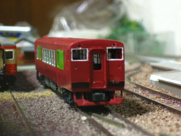 現在は虫さんの仰るKTRのエーデル(KTR1002)を製作中です。 話は変わりますが、キハ41の塗装をしてみました。分かりにくいですがドア横の細線も再現しています。 更新車、KATOベースでは窓埋めが大変です。。 |