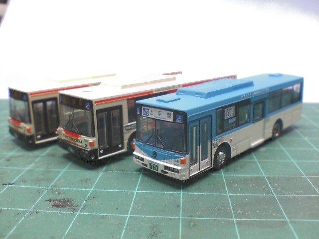 こんな狭い駅普通はない(名鉄にはある)ですが、対向式にしたりホームの延長部にするなど使い道は多いようです。 ただ…取り付け孔をシールで塞ぐというのはいただけませんが。 今年の最終購入模型は意外なことにバスコレでした(爆) 7Eノンステップ目当てだったので手堅く開封で関東バス7Eと、ブラインド品を2つ買いましたが。。。 開封で押さえたはずの関東バスが当たるという妙な強運。もう一つは川崎市営(裏シクレ)。 こんな微妙な所に運を使わず、ちゃんとシクレが当たってくれよと思うこの頃です。 ちなみに今まで一度もシクレが当たったことはありません。 |