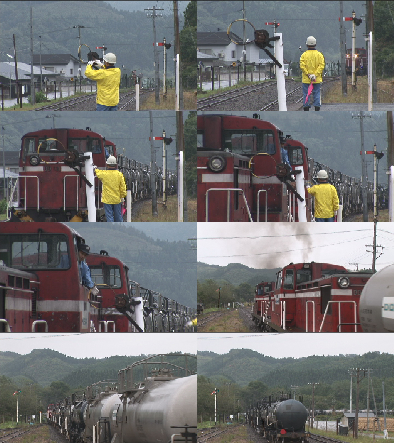 当然通過現示な腕木信号あり。 大館行きは、ここで凸切り離しで凸凸凸→凸凸。 午後便しか見てなかったので短いと思いきや(それでも結構長いけど)このざまですよ...。 凸凸ΩΩΩΩΩΩΩ....ΩΩΩΩΩΩΩΩΩ←20車(空車)くらいつないでた。 |