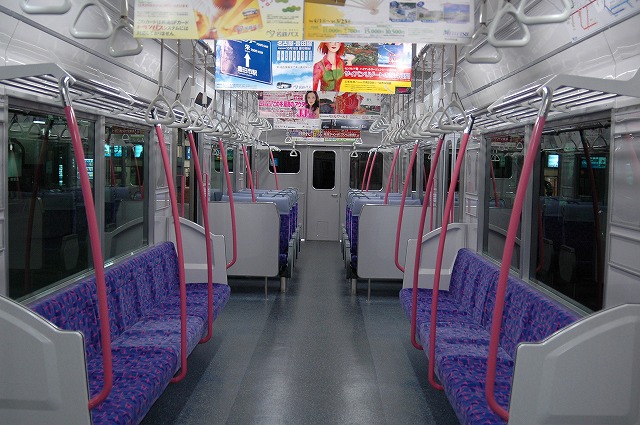 妻扉は車内側と同じ化粧板でしたよ。 裾は、車内と同じ高さまで金属押さえ。 15センチくらい? 車内側も、床色にかなり近い感のベージュですね。 関西で多用されている。 |