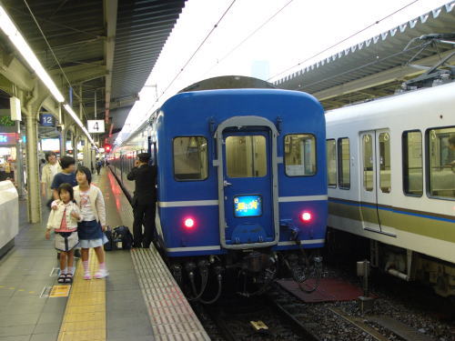 金沢のボンネットも、サンダバ代走とか団臨でしょっちゅう来阪してますし…。 でもいつまでも走るものではないですし、見かけたら撮ってます(笑 では、最後の座席夜行となりうる!?ドリームにちりんを。 長時間停車・方転・普通列車区間があったりするので楽しいですw |