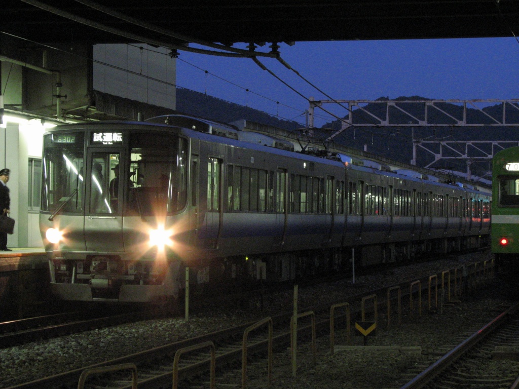 編成は↓ ←大阪 クハ+モハ+サハ+クモハ 永原→ です。 試運転区間は向日町(操)〜永原〜向日町(操)です。 いやぁ、ついに始まりました(? |