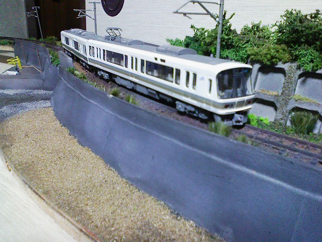 なにがいいかというと 虫さんもおっしゃっている カーブの表現が自然にできますね。 エンドレスにすると、どうしても急な180度カーブを作らざるを得なくて トンネルにしようと工夫したり、結構 大変だと最近思ってきました。 お山のカーブも、180度見せたくないというコンセプトだったのですが 思ったほど効果はなかったかもしれないです。 うちは まだまだ仮設状態で、207のTNとかの走行試験中です。 固定化は来月くらいになりそうです。 全然 作業が追いつかないですね(汗 |