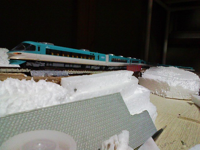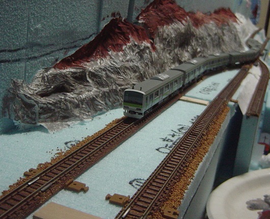 この前、r−31さんのレイアウトを拝見する機会があったんですが、 スタイロフォームをベースに作るってのが思った以上に発展性がありそうでビックリしました。 仮設で作るのにももしかしたら良いかもしれないです。 215系ってやっぱり大きいですね。 |