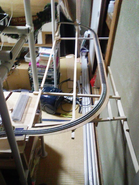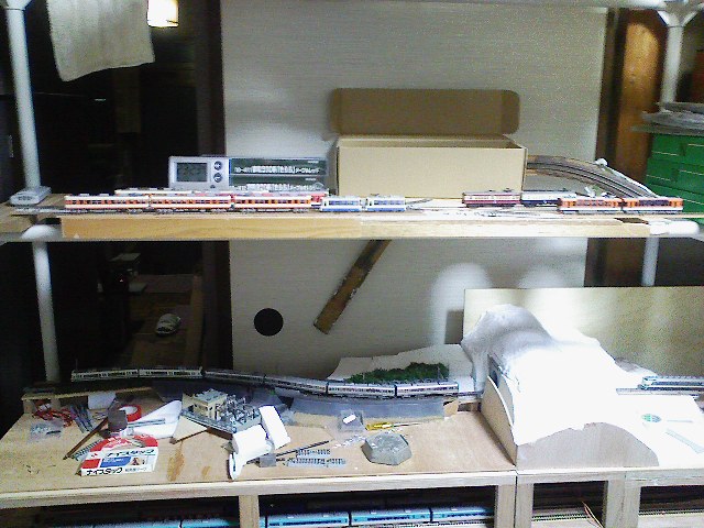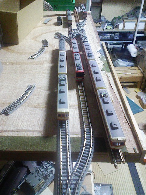 スペースがないのは、私も 似たりよったりです。 ただ エンドレスだけがレイアウト じゃないですよ。 「ループ+終端駅」とか いかがですか? それと、長方形のベニアを切り貼りして、L字型のボード にしてみてください。 奥行のないボードでも、ゆったりとしたカーブを組み込めます >されみあさん 「荒らし」対策 お疲れ様です。 線路の勾配からみて、行き着く先は、上段(に建設予定)の レイアウトですか? |