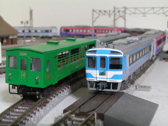 トロッコとアイランドUがかっこよく出来ていてすごいですね、私もうまく作れるように頑張りたいです・・・。 マイクロエースの発表来ましたね・・・。201系が900台だったら結構気になっていたかもしれません。 先週の土曜日に家で運転してみました。スプリングウォーム動力が絶好調でお気に入りです。 写真は列車交換風景をイメージして見ました。 |