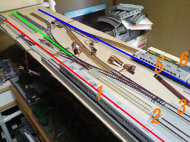されみあはJR四国予讃電化までがターゲットなので、ちょうど被害無しです。 それ以降は集める予定が無くて…。 大丈夫ですよ、185は52両もいますから☆。 そう簡単には……たぶん。 >架線注意さん 京福まで出るんですか! もうなんでもありですね、この調子なら地方私鉄まででそうな…。 なんでこんなにいろいろと。。。 鉄コレとかもあるし。。。 >らいとぶるさん かふぇおれ、出しそうでどこからも出ないですよねぇ。 アレこそ結構売れるだろうに…。 マイクロエースに期待したいところですよ。 >星さん 被弾ご愁傷様です。。。。 エーデルは夏ですね。 それまでに頑張って! 広島58ですかぁ。 この色って乗らなかったなぁ、結局。。。。 見たかどうかの記憶もあやふや(ぐ。 >Minamiさん そうだったんですか! これでここまでの流れがわかった感。 ってか、あんまり目立って欲しくないんですよね、マスコミで。。。 余計な風当たりが(謎。 そしてやっと決まった、駅左側のポイント配線☆。 赤が内回り、青が外回り、緑がヤード入出庫。 そして、1番が内本、2番が内待避、3番が外退避、4番がうつってないけどローカル線用、5番が外本、6番が外退避(貨物)です。 そして、緑の上の2本線は機待1,2。 設計の都合で、外回りから2番に入れなくなってしまいました。 自作のクロス作って、入れるようにしたら面白いんだけどなぁ。。。。 |